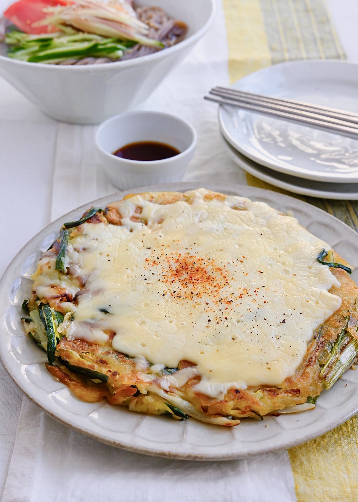 野菜たっぷりのチヂミに、とろーりチーズを加えたアレンジレシピです😆✨